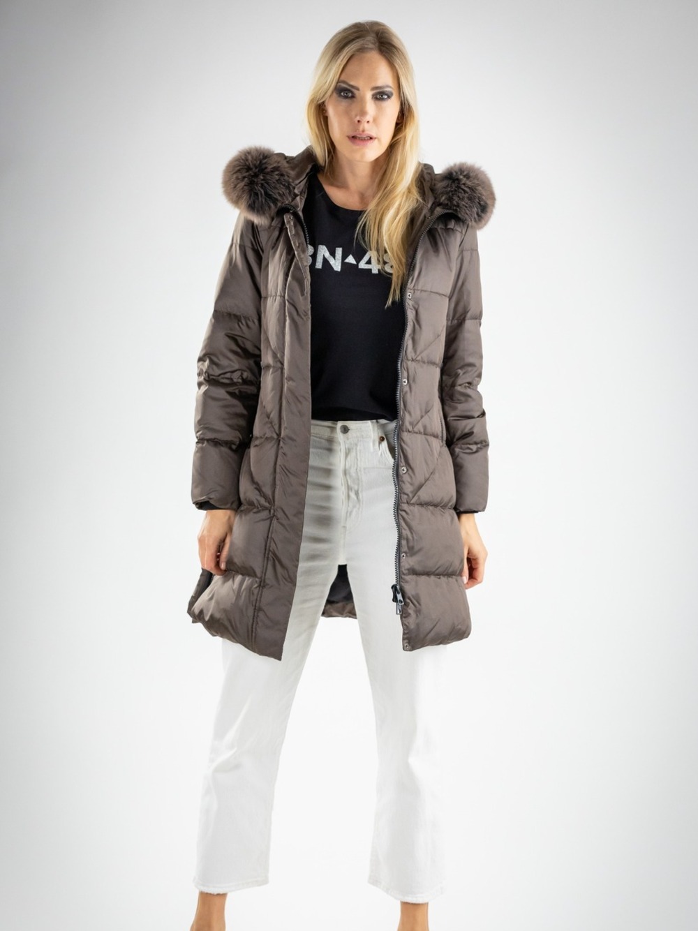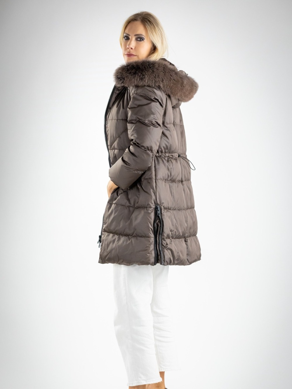 Piumino lungo con pelliccia